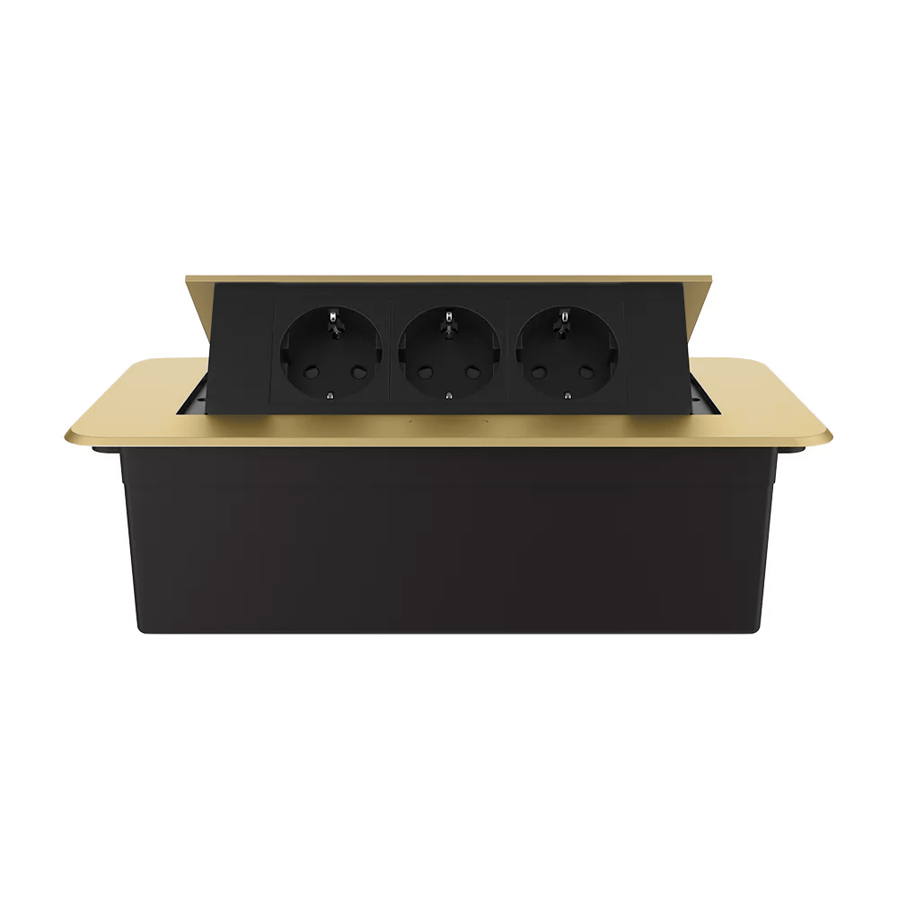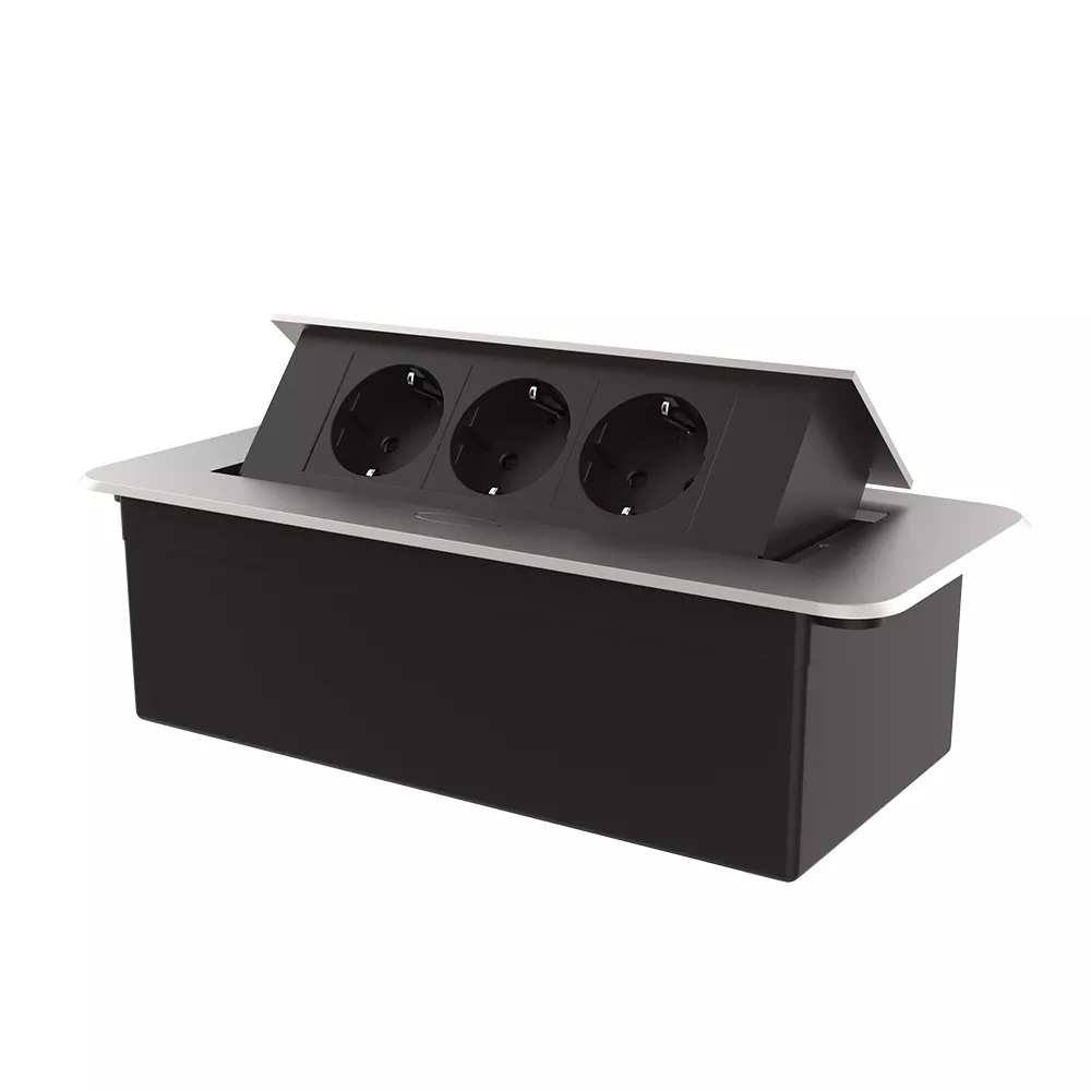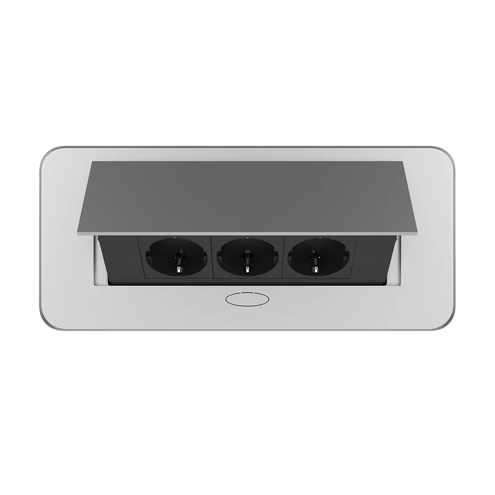 Вбудована потрійна розетка LIVOLO для прихованого монтажу в стільницю, поєднує стильний дизайн з функціональністю у кухнях, офісах чи конференц-залах.
