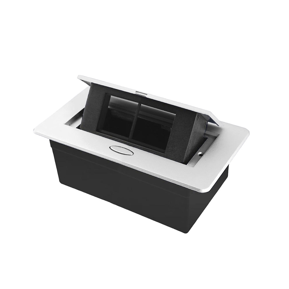 Розетковий люк LIVOLO у білому кольорі призначений для вбудовування у стільницю, створюючи приховане місце для підключення електроприладів. Меблевий корпус виготовлений з алюмінію та не комплектується розетками, що дає змогу самостійно підібрати потрібні модулі. Підходить для використання на кухні, у офісі чи конференц-залі.