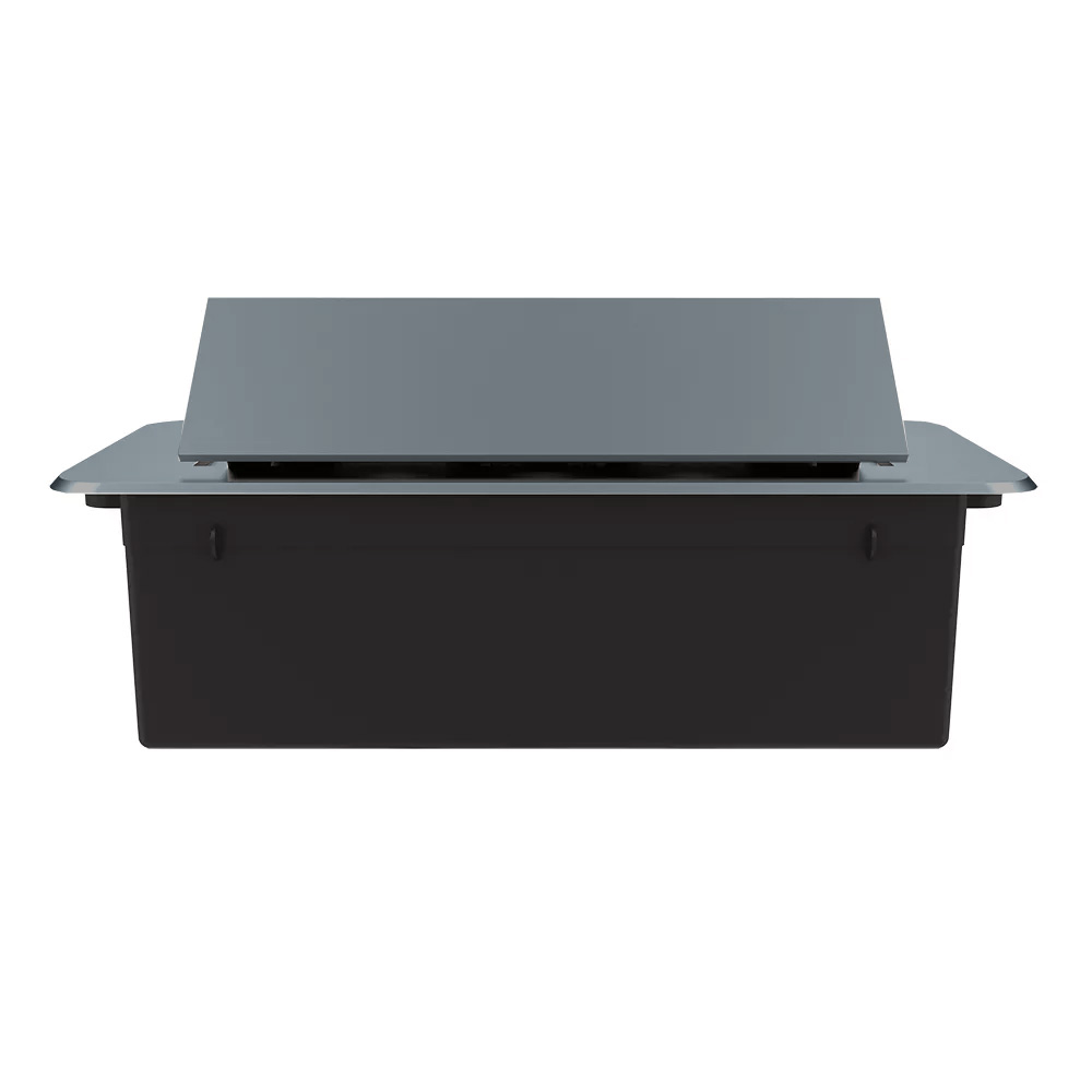 Розетковий люк LIVOLO сірий, вбудований у стільницю, меблевий пустий корпус без розеток для наповнення модулями, плавне відкриття, алюміній, 265×118×70 мм, для кухні, офісу чи конференц-залу (VL-SHS013-G)